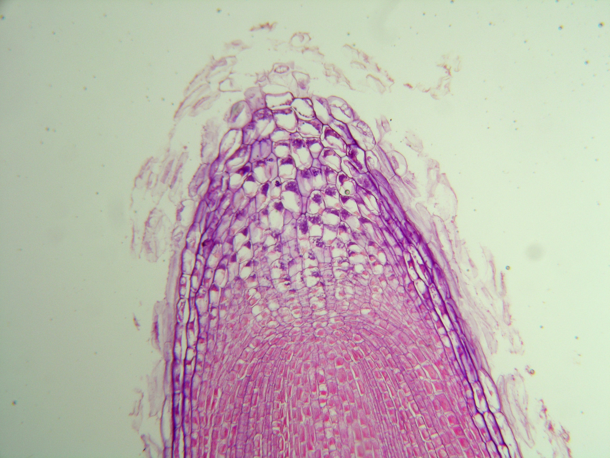 Racine méristème apical de l’oignon, couvert par la coiffe.