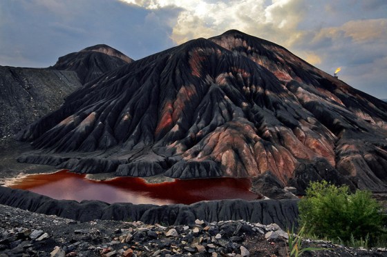 Антропогенний фактор біосфери. Пейзаж з териконами (відпрацьована порода з шахти), Донбас, Україна.
